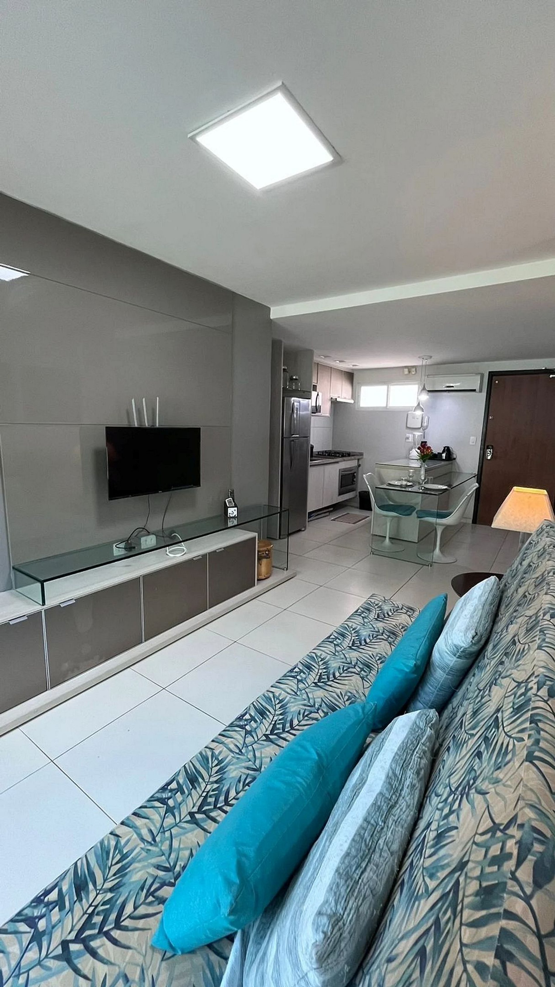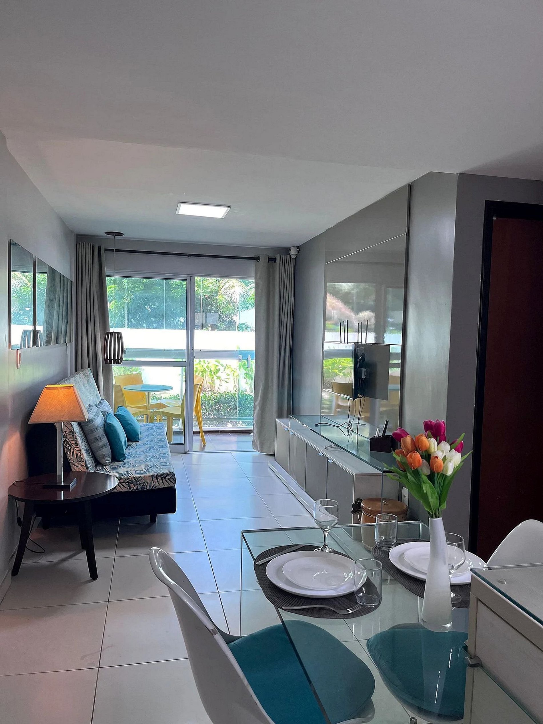 O que torna o Flat 102 especial é a sua configuração térrea com quintal privativo e varanda, proporcionando uma extensão da área de convivência, sem necessidade de elevadores, ideal para famílias com crianças ou idosos,. Para o seu conforto, o espaço é "super" funcional: